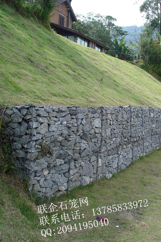 格賓網箱是由格賓網面構成的長方體箱形構件,是由有必定距離巨細的隔板組成若干單元格,一同用鋼絲對每個隔板的周邊和面板的邊端都進行加固。在護岸施工現場再向格賓網箱里邊填充石料,依據不一樣護岸區域、不一樣工程等級和不一樣種類而所選用的填料也是不盡相同,常見的有碎石、片石、卵石、砂礫土石等。所填料的巨細通常是格賓網孔巨細的1.5倍或2倍選擇,也能夠用其他資料如磚塊、拋棄的混凝土等。格賓網箱具有極佳的安穩性和全體性,它是由熱軋鋼絲拉伸后構成的網線,經熱鍍鋅或復合防銹處置,再經聚氯乙稀覆塑處置后織成,因而具有十分高的強度和耐腐蝕性,在天然環境中通常可正常運用10年而不改變性狀。一同,格賓網箱護岸布局能與當地的天然環境極好地交融,填料之間的空地為水氣、營養供給了杰出的通道,為水生生物供給了成長空間。這種布局抗沖刷才能十分強,并且具有很高的抗洪強度,適用于水量較大且流速較快的河道,并且造價低價。
