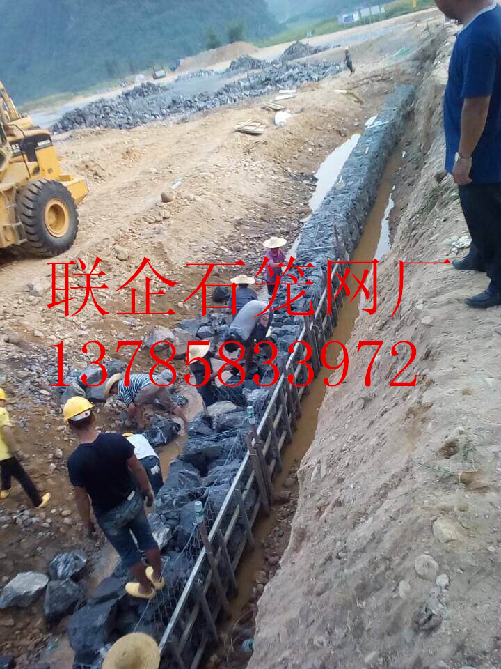 格賓籠在施工填充料前,應(yīng)在格賓籠外露面綁扎竹竿,木棍,鋼管或面板等,待填充料施工結(jié)束后拆除。